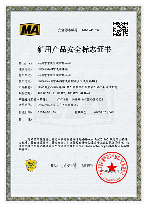 礦用產(chǎn)品安全標(biāo)志證書MHYAV 10X2,80X2,100X2(1/0.8mm2)